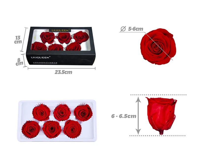 We are the biggest manufacturer of preserved rose heads in China.We can make the preserved roses heads according to your